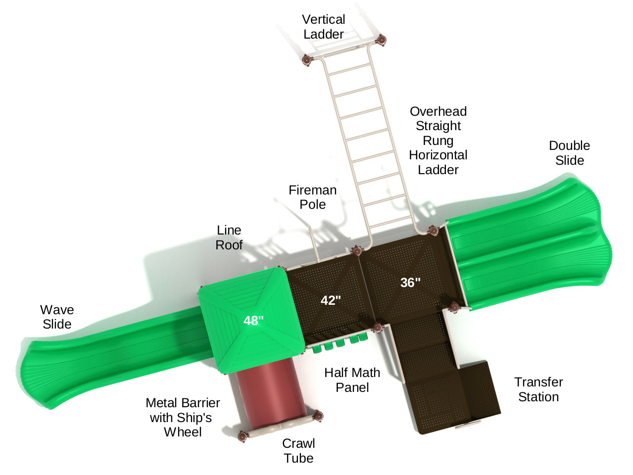 The Bar Harbor packs both fun and learning into one small but exciting playset. The playset is fixed with two different kinds of slides on both ends to keep things interesting. Kids can race down the Double Slide for quick fun or take their time on the Longer Wave Slide, which offers a bumpy ride to the bottom. Having two sets of slides waiting times are reduced by a lot. And we all know kids can get pretty impatient when the fun’s in full swing! With the addition of an easy Transfer Station stairway, the Bar Harbor makes sure that kids of all abilities can join in the fun. The little daredevils who like a challenge can swing their way to the deck through the more physically testing Overhead Straight Rung Horizontal Ladder. The Bar Harbor is a brain workout, too, thanks to the Half Math Panel that sharpens their math skills in a low-pressure, enjoyable setting. The Crawl Tube and the Fireman Pole also add some wild adventure to Bar Harbor.