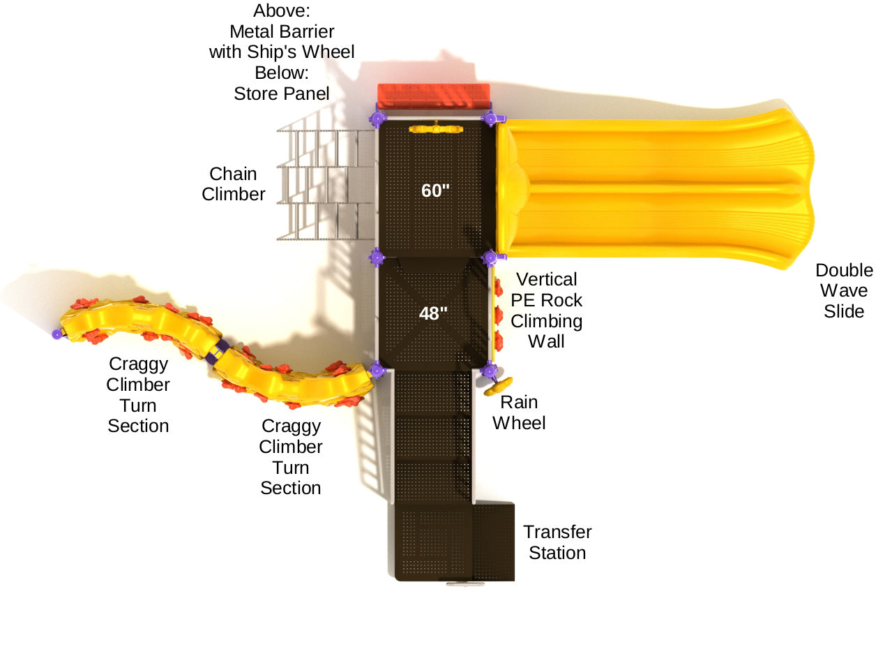 For kids who are hyperactive and like to do physical activity, the Chattanooga play system is a dream come true. There are, in total, three entry points of this play structure. The first and the easiest one is the Transfer Station, which kids can use to climb up the deck without any hassle. However, kids who are brave and like climbing challenges can either take the Chain Climber route or be more audacious and climb the PE Rock Climbing wall or a more challenging Craggy Climber. Once they reach the deck, a Double Wave Slide will be waiting for them to offer a slide full of fun. Apart from climbers and slides, the Chattanooga Play Structure also comes with a Store and Wheel Panel, which children can use to play pretend games with friends. While it may look small, but it can easily accommodate up to 30 kids at once.