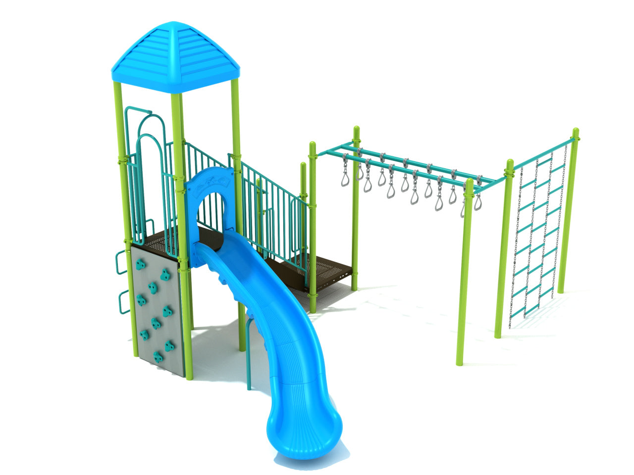 Homestead is full of challenges for hyperactive kids who also love to take on fitness challenges. Kids who just want to enjoy the slide can access it easily through the Transfer Station without any hassle. But kids who do not want it easy can either take the Snake Climber route or start from the Chain Climbing Wall. The Chain Climbing Wall is more challenging because kids will first have to climb to the top of the wall and then access the biggest hurdle, the Double Overhead Straight Swinging Ring Ladder. The Ladder has straps fixed for both hands that kids can use to swing their way across. It may look easy, but you will see kids struggling to cross their way through it. And that's exactly the kind of fun children want. Sturdy, fun, and challenging, all in one Homestead play structure.