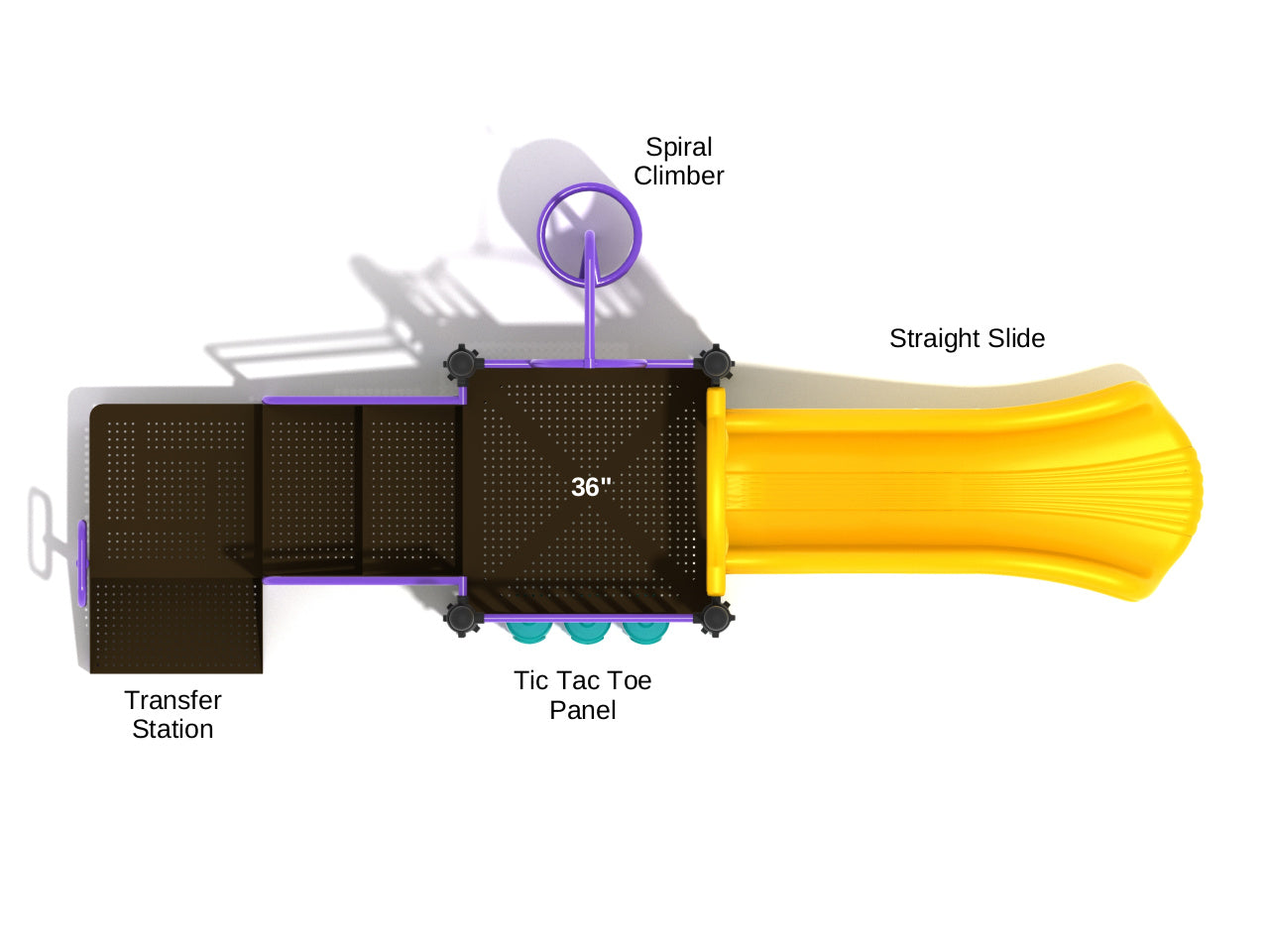 Irondale may look simple, but it is the most loved by kids of ages 2-5. The easiest way to get on the deck of Irondale is through the Transfer Station. If kids are feeling a little audacious and want to take up a climbing challenge with their friends, they can take the Spiral Climber route to get on the deck. Once they reach the deck, a Straight Slide will be waiting for them to offer them loads of fun that comes with sitting and letting gravity do the job. The Irondale play system has sturdy rails around it to protect kids from tripping over. Apart from the sliding fun, there's also a Tic Tac Toe Panel where kids can play with their friends and engage in healthy competition. And behind the Tic Tac Toe Panel, beneath the 36'' deck, there's a lot of room for kids to take shelter and play pretend games.