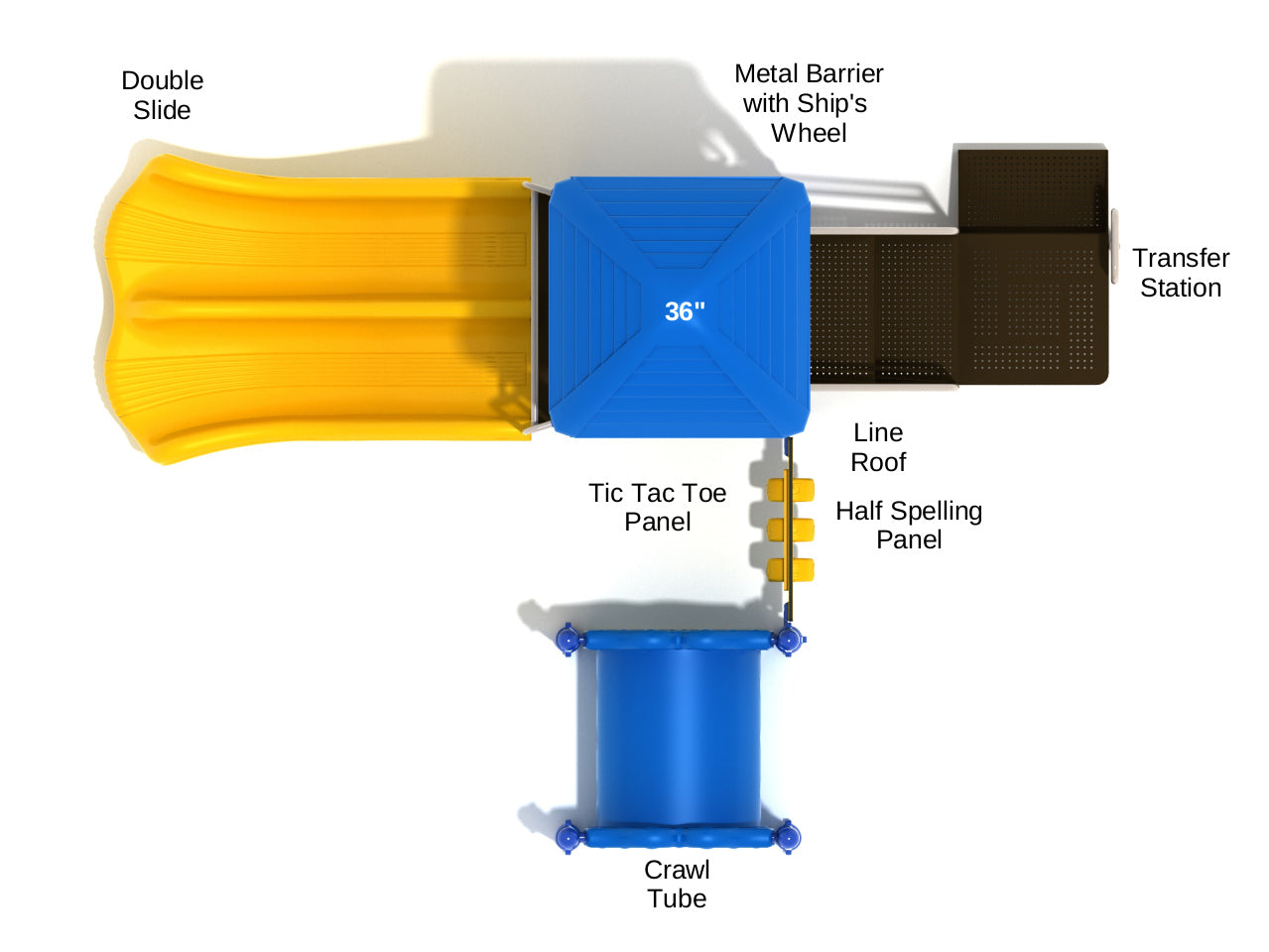 Ketchum is a little fun house that every little kiddo dreams of playing in. From fun activities to a thrilling slide, it has everything to keep kids active and engaged. First off, it offers an easy entry point with the Transfer Station that allows kids to get on the deck. Once kid get up the deck, they will see a Tic Tac Toe Panel, which they can play with their friends and engage in healthy competition. Right across the Tic Tac Toe Panel, there is Ship's Wheel, which kids can use to play all sorts of pretend games. Once done with these activities, kids can enjoy the thrill that comes with sliding down using the Double Slide. As the name suggests, the Double Slide can accommodate 2 kids at once, meaning kids don't have to wait for their turn. After sliding down, there's also a small Crawl Tube on the surface that kids can get in to along with their friends and enjoy to the fullest.
