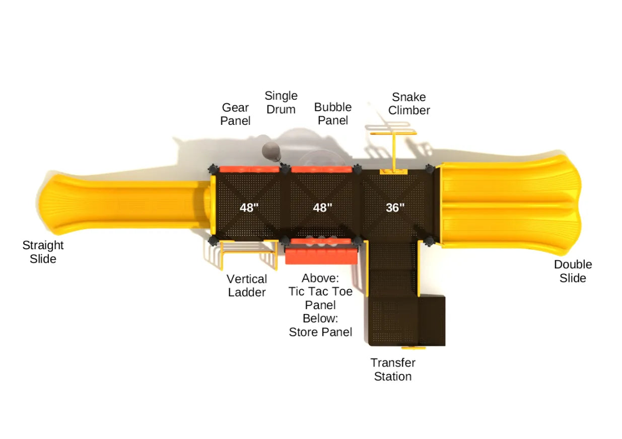 True to its name, La Crosse is just as fun & exciting as the famous sports it’s named after. It is perfect for kids as young as 2 with a fall height of 48”. Its 3 slides let many kids slide down without getting in each other’s way. A Snake Climber offers alternating steps to test a child’s coordination while enhancing their physical strength. La Crosse is equipped with Gear, Store, Tic Tac Toe, and Bubble Panels that allow for creative play and all sorts of pretend games. Very young kids can use the Vertical Ladder to climb easily by gripping onto horizontal bars. This way, new climbers can gain a lot of confidence in their adventurous skills. La Crosse’s design distributes play activities evenly among kids and reduces the chances of in-fighting among playmates. Kids can congregate on top of this play structure without crowding. Ground-level amenities will foster imaginative play and socialization (e.g., kids playing store owner & customer).
