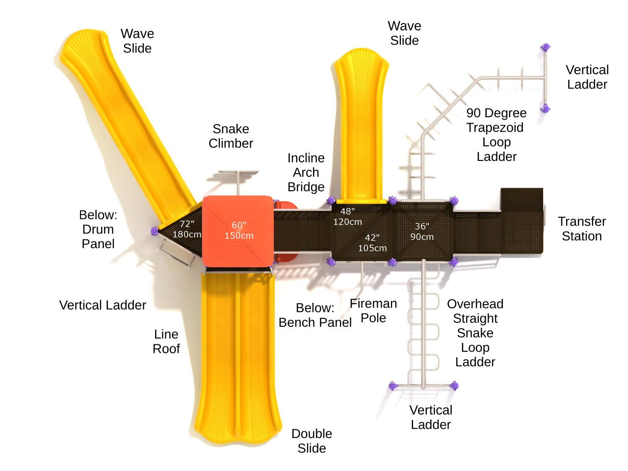 With two bumping Wave Slides and a Double Slide fit for the fastest of races to take place, the Minocqua boasts a wide variety of features guaranteed to keep kids amused for hours. There’s a Vertical Ladder to take kids straight to the high top deck or they can make use of the twisting Snake Climber that requires hand-eye coordination and a good sense of balance. By far the most popular feature of this apparatus for children to enjoy will be the two sets of overhead bars, a 90 Degree Trapezoid Loop Ladder and an Overhead Straight Snake Loop Ladder. Both of these require children to get active and challenge themselves mentally as well as their bodies. If they fail the first time they can always get back on the Vertical Ladder and try again and again to build perseverance and patience. A Fireman Pole is a nifty way to get off the structure and there’s additional features like Drum Panel and Bench Panel for children to explore.