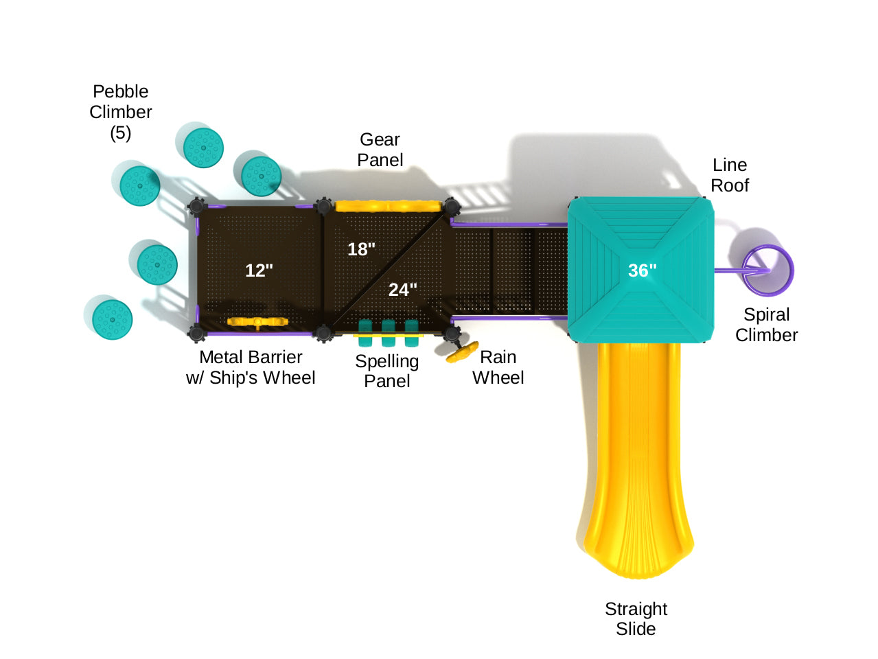 With a fall height of 36”, this stable, short, and compact structure can accommodate 26 kids. Children can start their climbing adventure safely via the 5 Pebble Climbers. Once they reach the deck, they will find a Gear Panel for hands-on interaction. Rotating these gears, kids can work on their motor skills and cognitive development. There’s also a Spelling Panel to promote learning in a playful manner and teach kids while keeping them entertained. When they walk up the deck, there’s a 3-foot Straight Slide that will slide them down and give them the bouncy effect, which will make them try it over and over. Right beside the slide, there’s a 3-foot Spiral Climber that they can use to climb down once they get bored of sliding. On the ground, the Mission Viejo also features a Rain Wheel, which is adored by preschoolers. Kids can imagine controlling a vessel and saving it from a shipwreck. Lots of fun & creative adventures are waiting for them under the Mission Viejo’s Square Roof.
