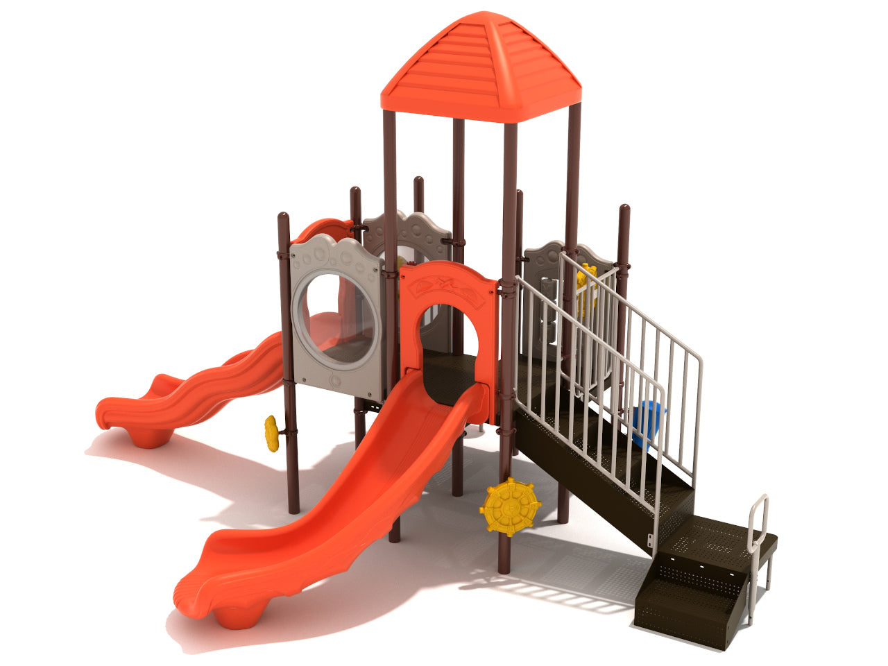 Set underneath a large Line Roof which protects from UV rays as well as rain, the set features a large Wave Slide as well as a Right Turn Slide for children to enjoy over and over again. The Transfer Station allows kids with different abilities to access the structure, and the Pebble Climber boosts confidence and coordination as they wobble their way to the platforms. Santa Cruz features a variety of interactive panels for children of all ages. A Gear Panel and Tic Tac Toe Panel bring strategic fun to test their brain power, while the Bubble Panel and Bear Panel inspire imagination. Kids will love to get musical with the Bongos attached to a lower pole and the Single Drum and Rain Wheel add to the potential for music-making fun. There are two Ship’s Wheels on the structure, one on the upper deck and one at ground level, which is perfect for a Captain and their Lieutenant Commander to steer the sea-faring fun in a new direction.